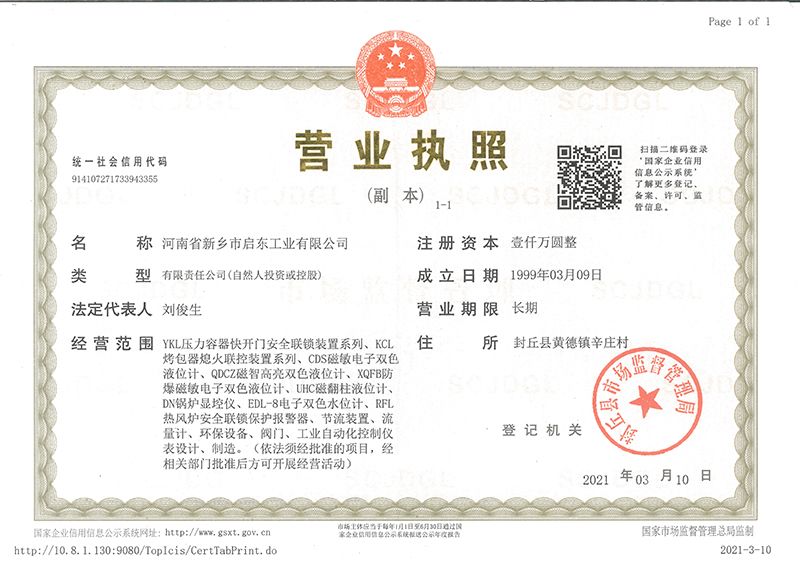 河南省新鄉(xiāng)市啟東工業(yè)有限公司始建于1987年,是專注研發(fā)、生產(chǎn)自動化儀器儀表(主要與壓力容器、鍋爐等容器配套使用)的廠家。主要產(chǎn)品有液位計(磁敏雙色型、磁翻柱型等)系列、烤包器熄火聯(lián)控裝置系列、壓力容器快開門安全聯(lián)鎖保護裝置系列、鍋爐報警器系列。二十多年來,公司產(chǎn)品暢銷國內(nèi)并遠銷俄羅斯、蒙古與東南亞,深得廣大用戶的信賴和好評。我們多年來致力于自動化儀器儀表的研制生產(chǎn),公司現(xiàn)具有完善的生產(chǎn)、試驗、檢測手段和設(shè)備??萍紕?chuàng)新、誠信服務(wù),是我們不變的經(jīng)營理念,我們將以強有力的技術(shù)支持及售后竭誠為客戶提供良好的服務(wù)。  2012年我公司成功研發(fā)了KCL系列烤包器熄火聯(lián)控裝置,并于2013年2月2日榮獲中華人民共和國國家知識產(chǎn)權(quán)局辦法的《實用新型**證書》<**號:2021202257735>該產(chǎn)品廣泛應(yīng)用于唐鋼等大型鋼鐵企業(yè),為烤包器安全作業(yè)提供了有力的保障?! ?002年我公司成功研發(fā)磁敏電子雙色液位計獨特的高亮度LED紅綠雙色顯示,獲得了專家的首肯和用戶的一致好評。在此基礎(chǔ)上我公司研發(fā)人員十年磨一劍,致力于XQFB-1防爆型磁敏雙色液位計的研發(fā),于2013年12月27日由國家防爆電器產(chǎn)品質(zhì)量監(jiān)督檢驗中心檢驗合格并頒發(fā)防爆合格證書<編號:cnex19.0883>。該產(chǎn)品性能得到了充分的發(fā)揮,廣泛應(yīng)用于含有Ⅱ類A·B級T1-T4組可燃氣體或蒸汽與空氣混合形成的爆炸性混合物的0區(qū)、1區(qū)危險場所。連接用戶DCS或PLC系統(tǒng)實現(xiàn)遠距離集中顯示和控制,從而實現(xiàn)節(jié)能、數(shù)字化管理。為用戶增加了一定的經(jīng)濟效益和社會效益,。2014年公司成功申請了夢潤儀表的logo,新的品牌新的形象,夢潤儀表是啟東的LOGO, 歡迎新老用戶前來洽談合作。  我們一如既往地注重科研的投入,憑借產(chǎn)品的不斷更新、加大科技含量,進一步拓展市場。我們相信品質(zhì)成就未來,以過硬質(zhì)量、優(yōu)惠價格、完善的售后服務(wù)熱忱歡迎廣大客戶來我司視察指導、洽談業(yè)務(wù);精誠合作,共創(chuàng)輝煌!